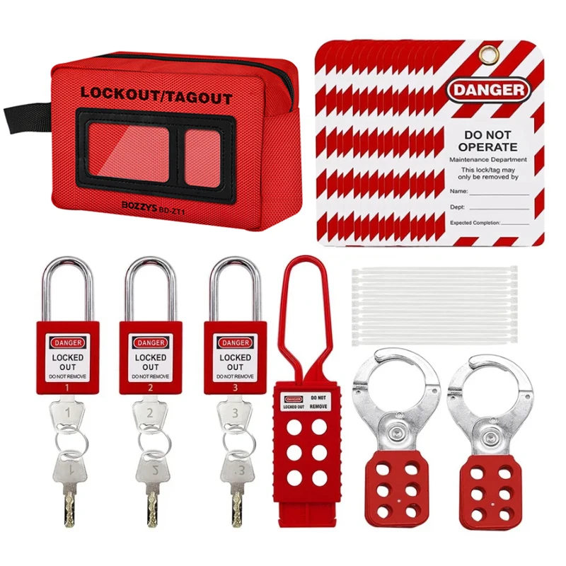 DOJUiffHhEHere you can buy Lockout Tagout Kit, Three KD Safety Padlocks,Group Lockout Hasps, Tagout,Nylon Ties, Universal Kit with Red Durable Storage Bag with free delivery to your post office.