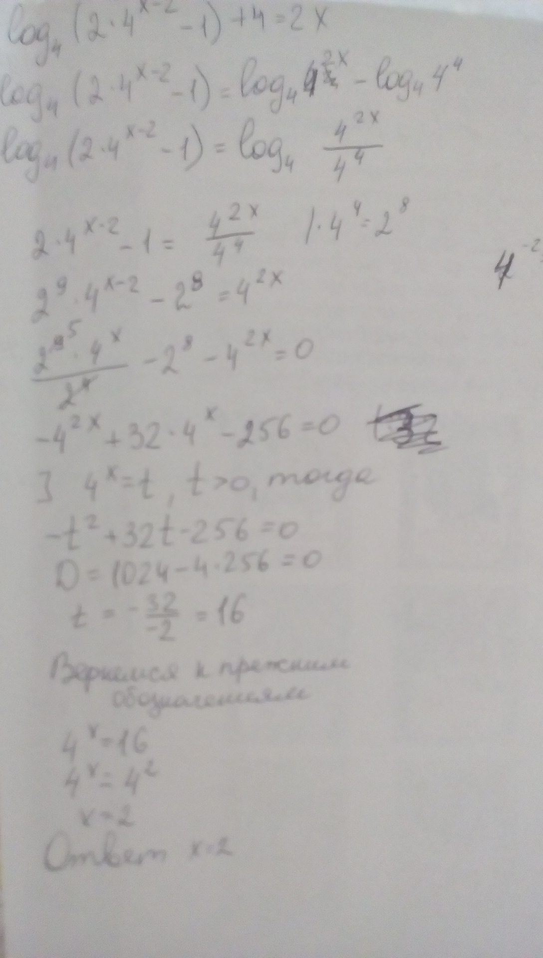 Log4 x 2 ответ