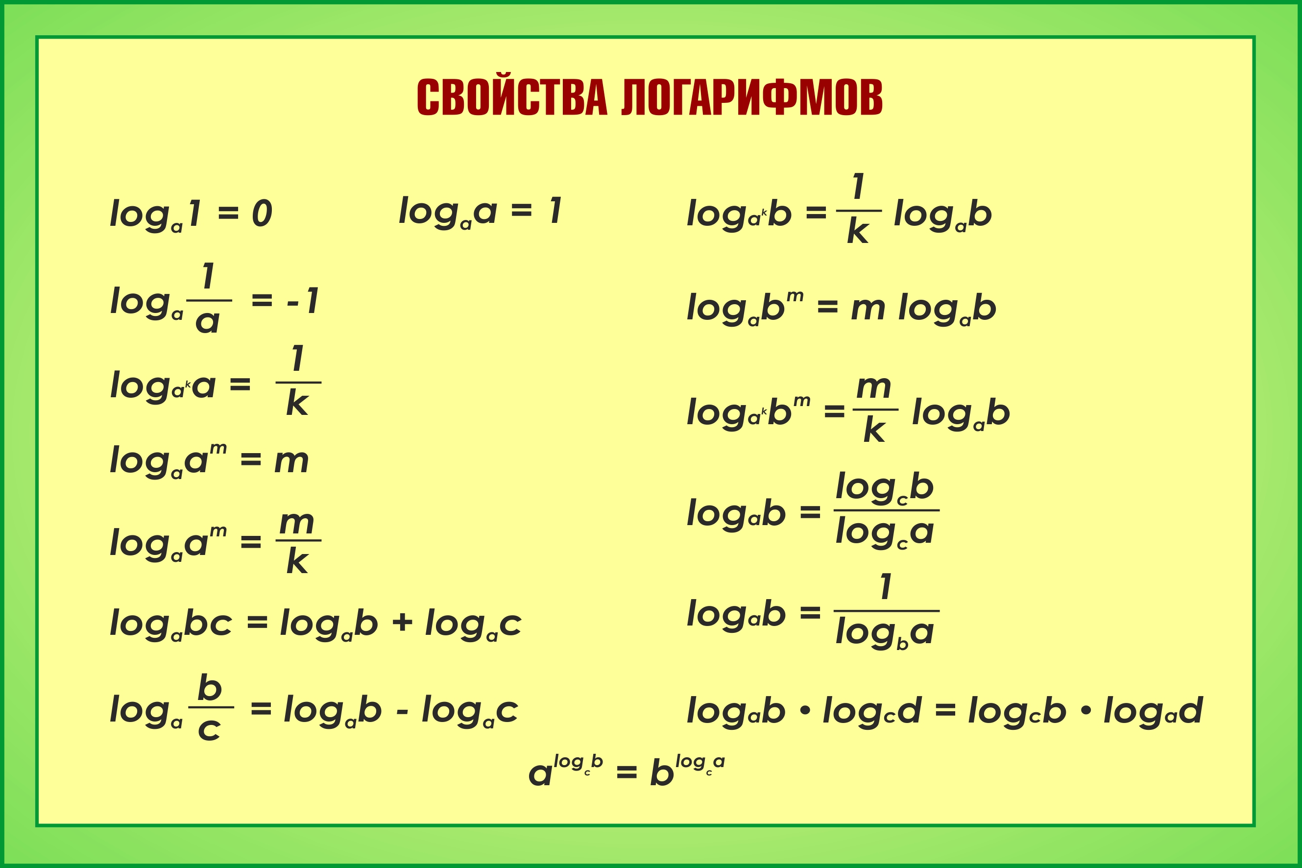 Логарифмы 11 формул