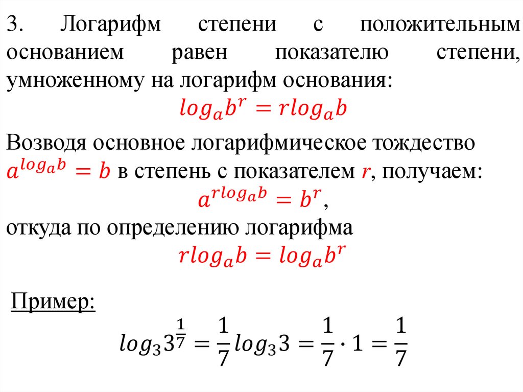 Логарифмы положительного числа b по основанию