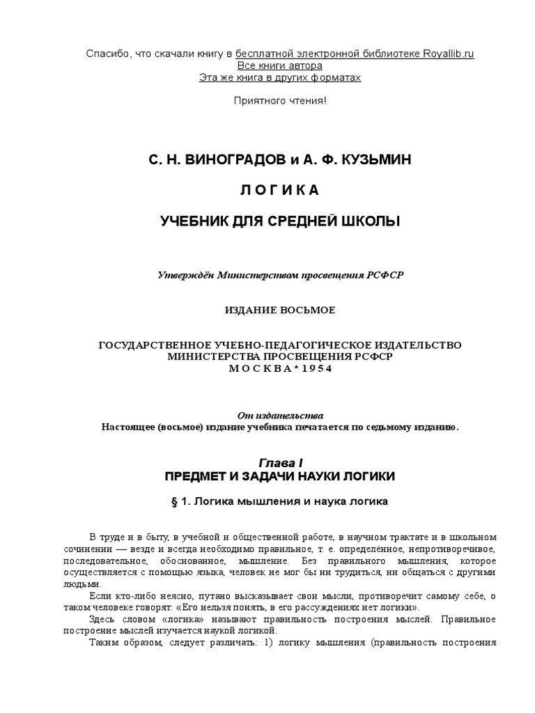 Логика мышления и наука логика В труде и в быту, в учебной и общественной работе, в научном трактате и в… Если кто‑либо неясно, путано высказывает свои мысли, противоречит самому себе, о таком человеке говорят: «Его…