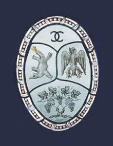 Эмблемой этого замка были перекрещенные буквы «C» . Не обошлось и без романтической легенды . Артур Кэпел был бизнесменом Кэпел помог открыть Шанель ее первый магазинчик в Париже, и в знак сотрудничества модельер придумала логотип из заглавных букв двух фамилий .