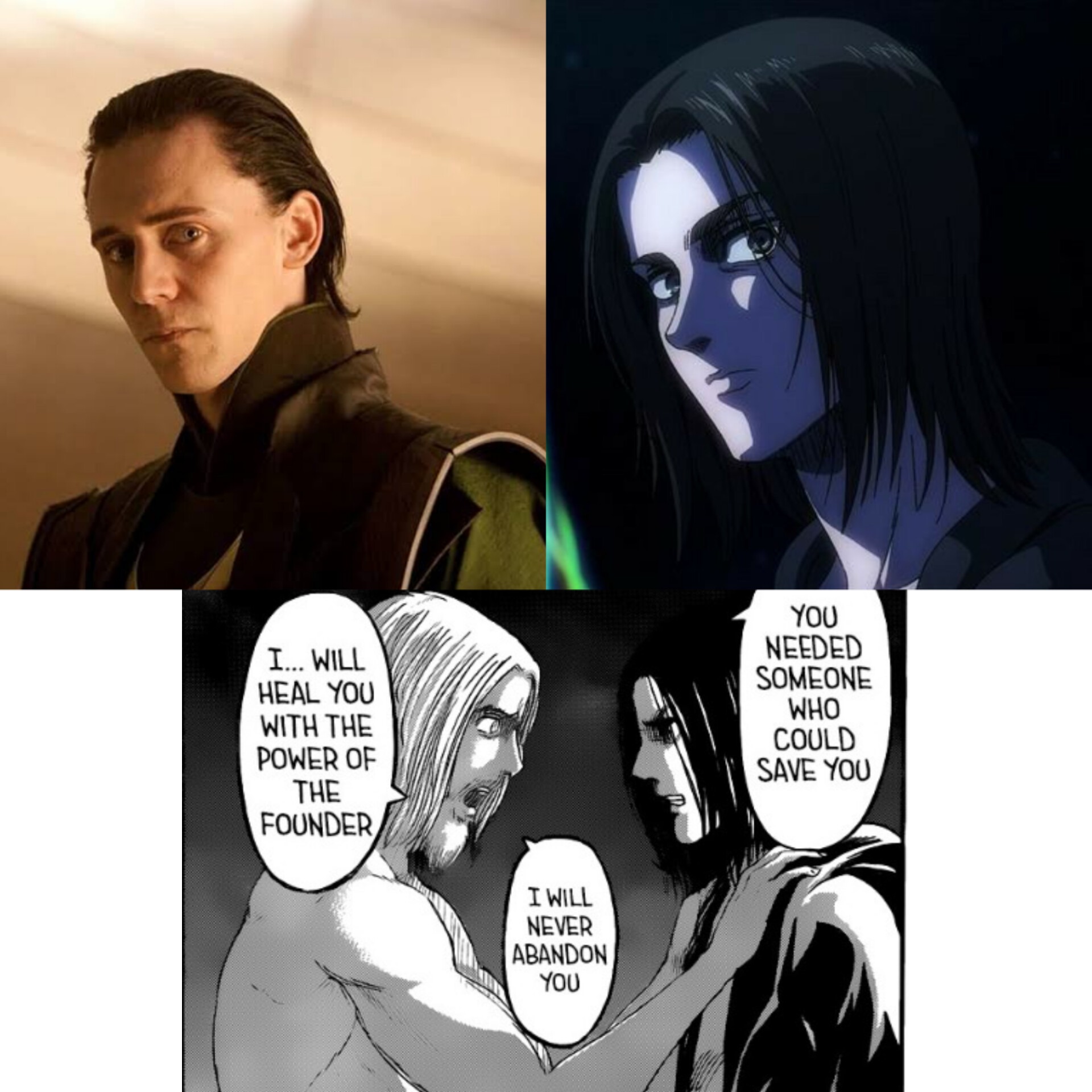 اول اینکه لوکی از دو نیمه غول و خدا هستش و ارن قدرت یک تایتان از یکی از والدینش دریافت کرد... قبل از اینکه لوکی به سمت تاریکی برود، مدام با شوخی هایش برای اسیر دردسر درست می کرد، درست مثل ارن با زیک.