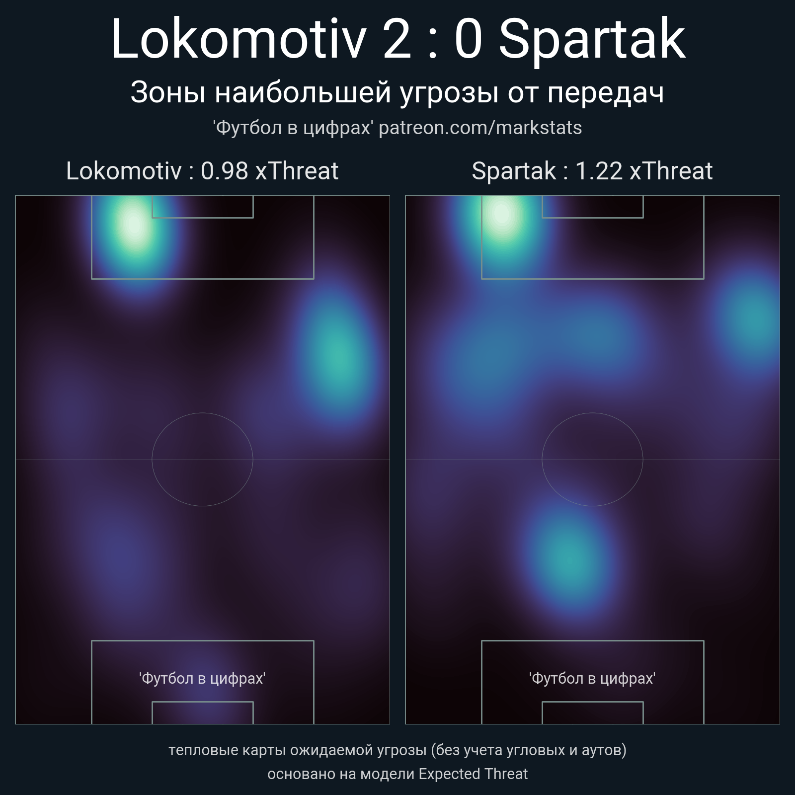 ▪ xThreat без учета угловых: 0.98 - 1.22