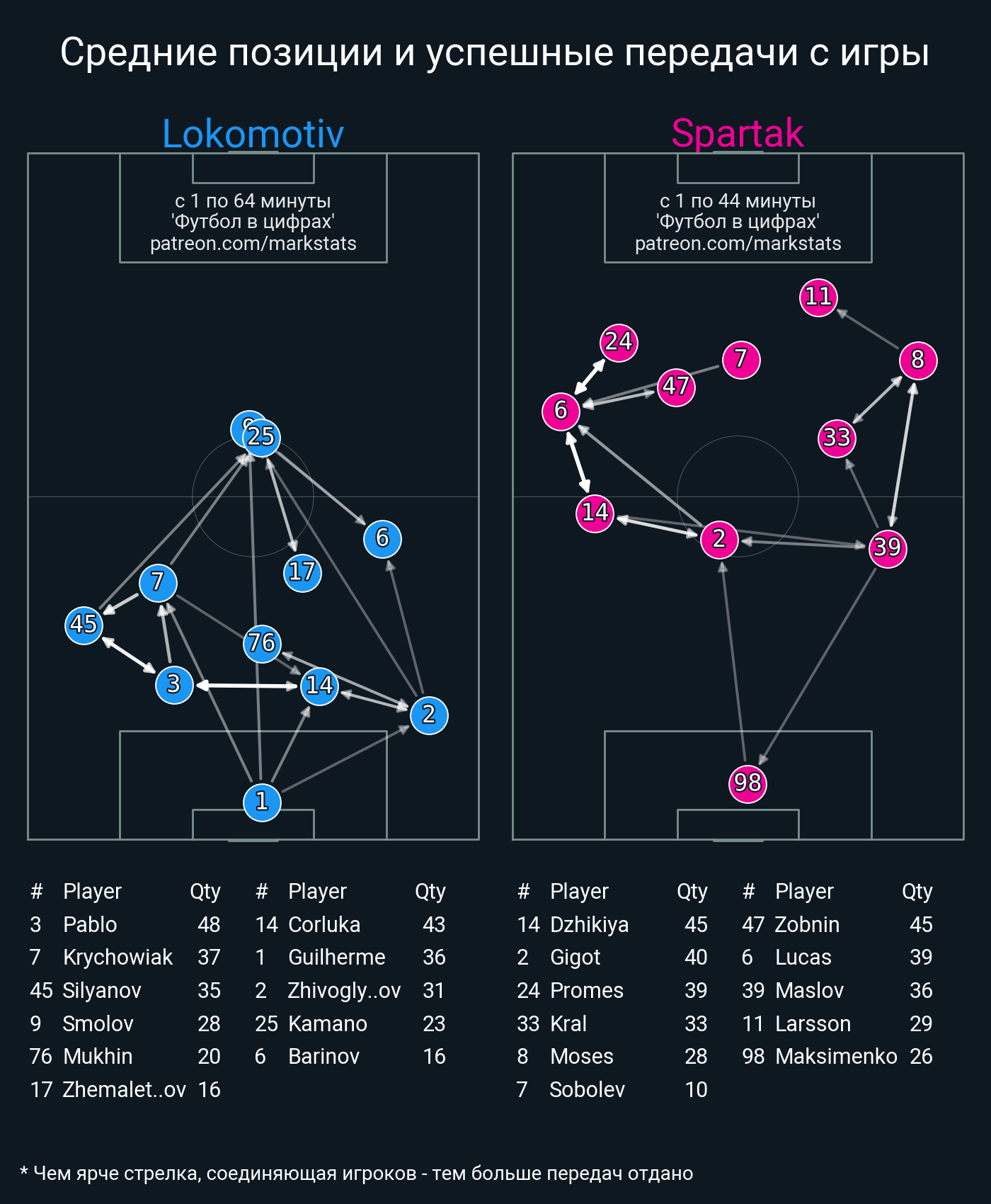 ▪ 31 успешных передач из 46 попыток (2 под удар, 5 с продвижением, 6 на трети соперника)