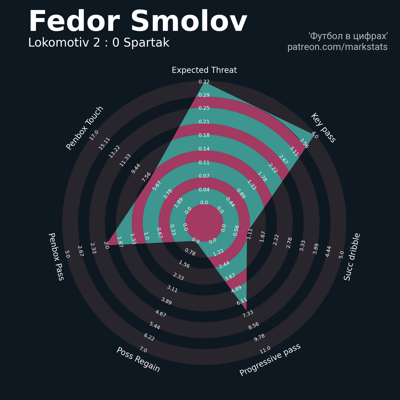 ▪ 0.18 очка xT (+0.13 со стандартов)