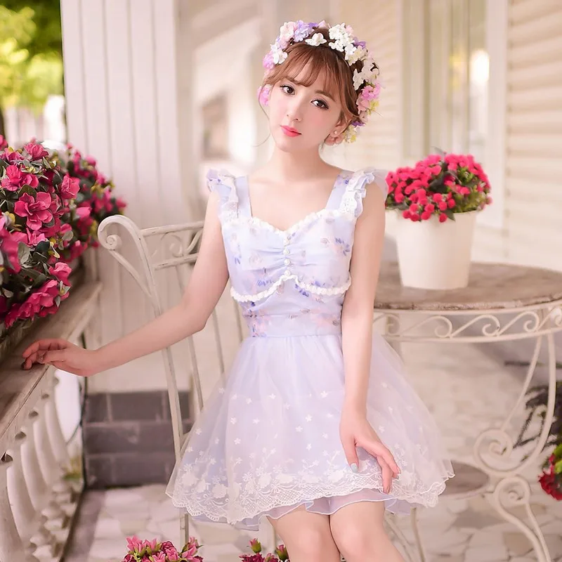 Japanese Kawaii Lolita JSK Dress Bow Sweet Cow Women Princess Girls Sling Cake Dresses Vestidos AFC1322
