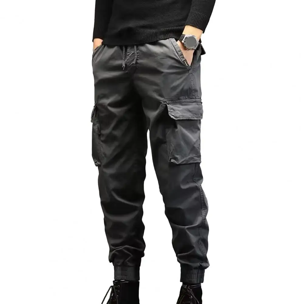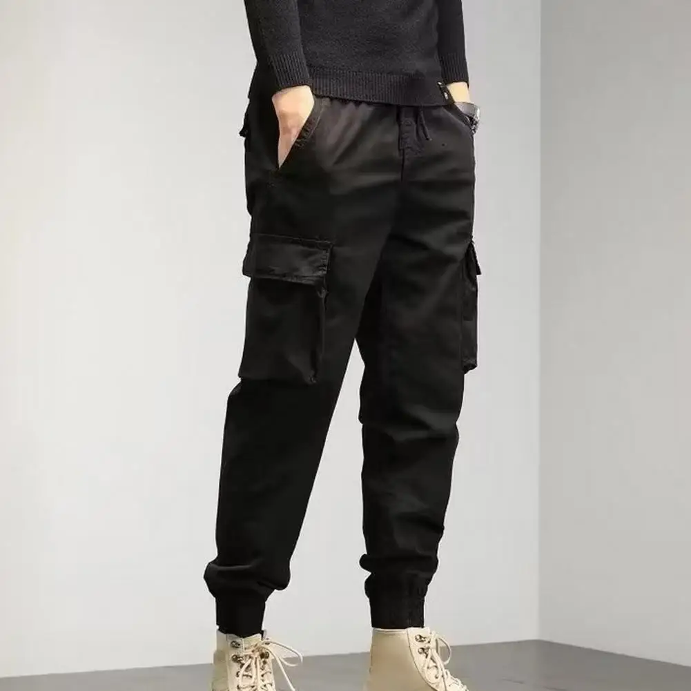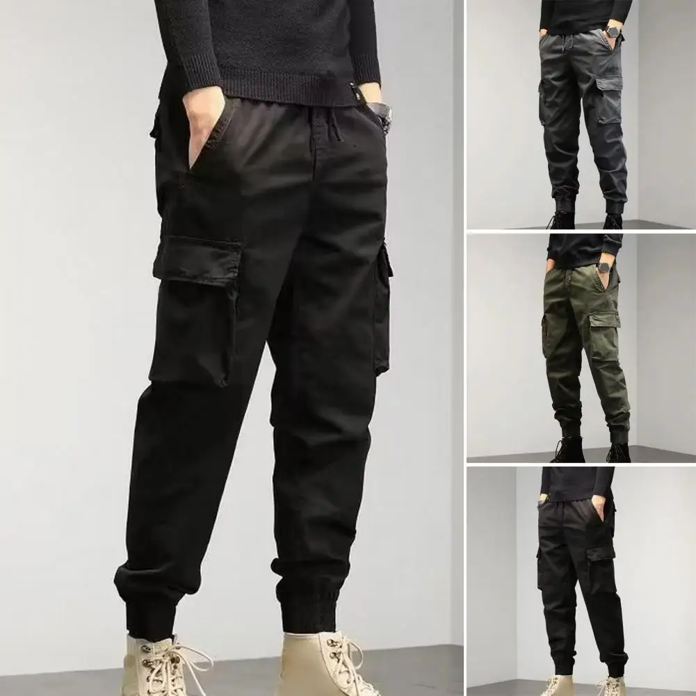Long Pants Versatile Men's Cargo Pants Multiple Pockets Elastic Waist Solid Color for Spring Autumn Streetwear Drawstring Cargo - Купить с бесплатной доставкой