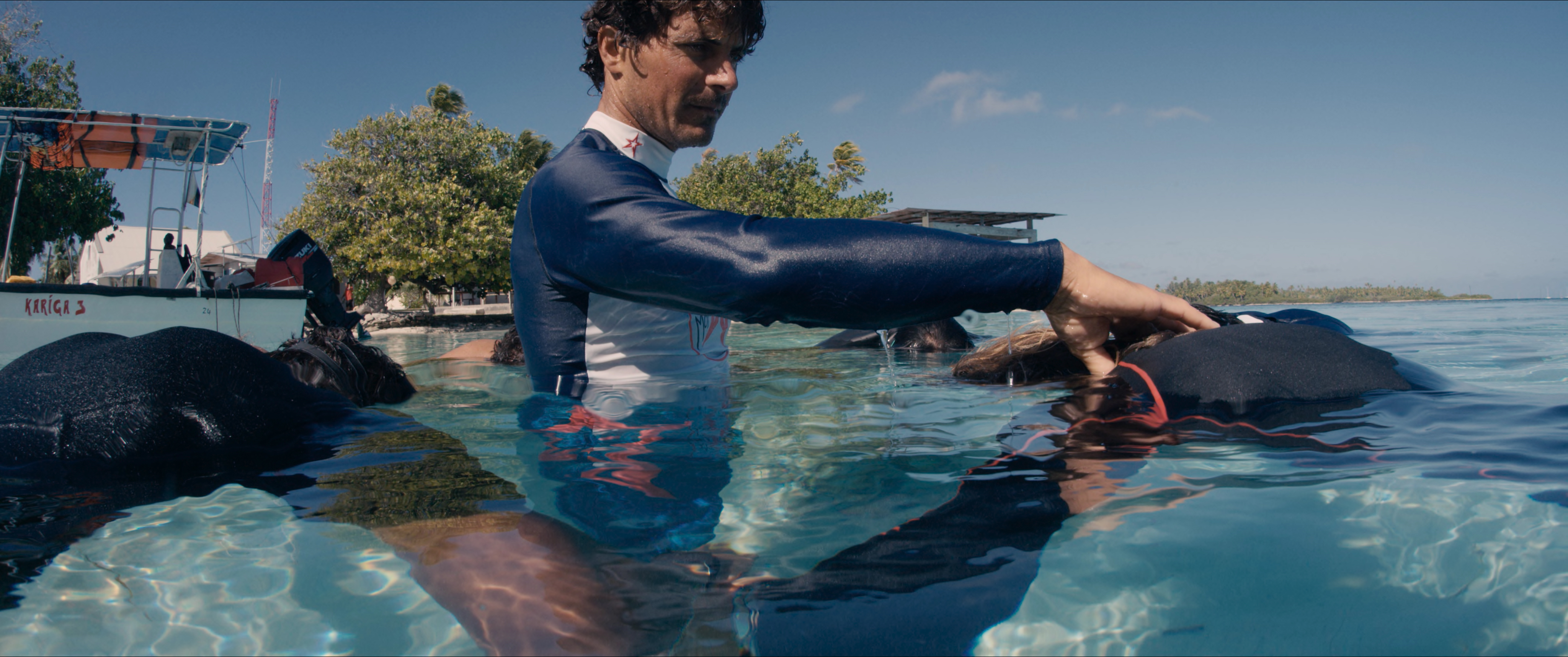 Randy moore showers outdoors with