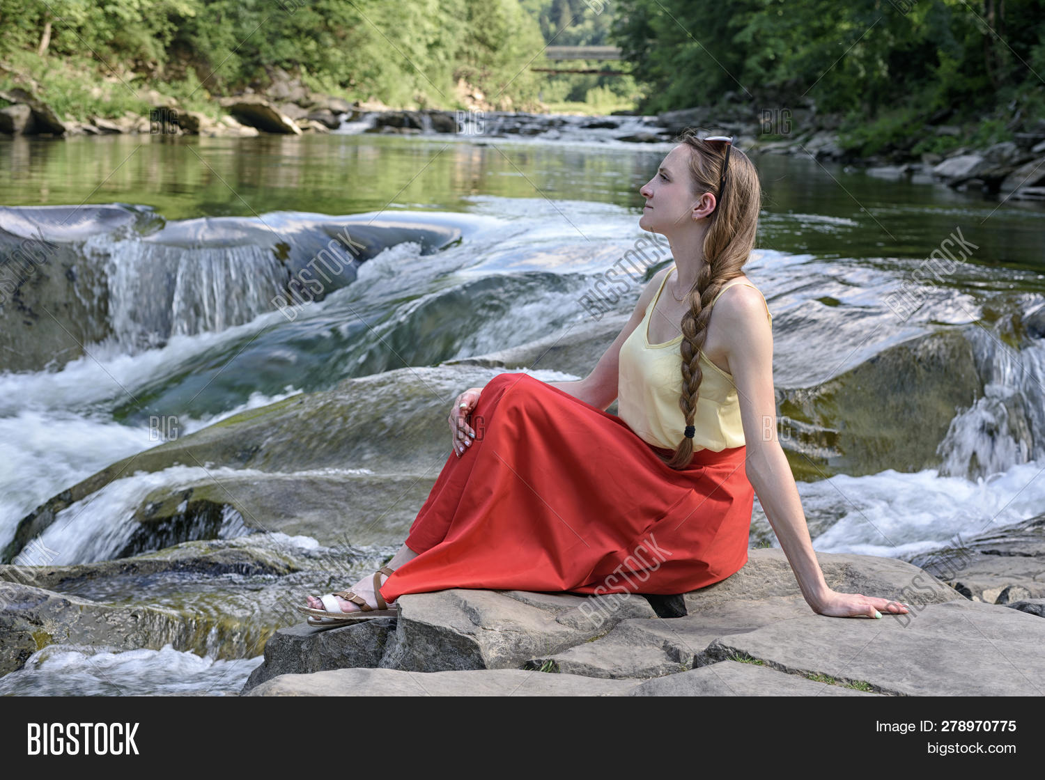 Long haired beauty strips down outdoors