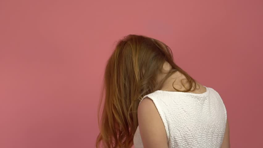 Long-haired brunette is very enthusiastic while giving head