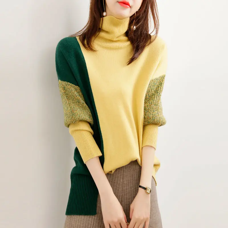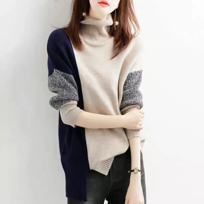 «Loose Turtleneck Solid Office Lady Thick Pullovers Splicing Irregular Women's Clothing Leisure All-match Autumn Winter Sweaters» по лучшей цене на рынке! Всего за 23$ (2185рублей)