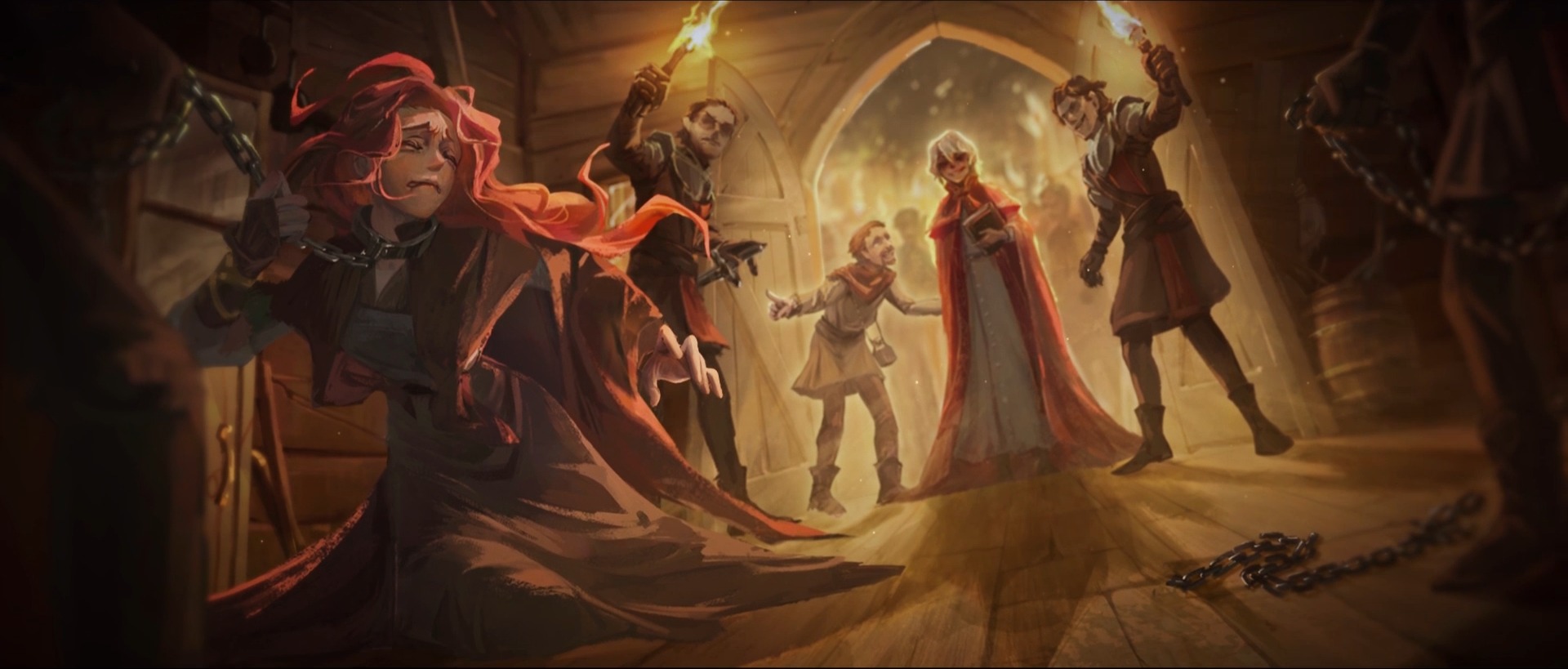 Небольшой слух: Натаниэль Норвелл, сын магистрата, повел толпу местных жителей в Ледяной лес под руководством охотника и поймал рыжеволосую ведьму, которая скрывалась.