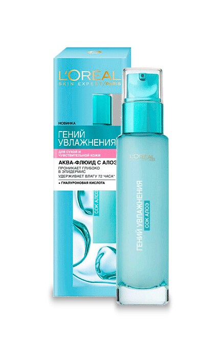 Аква-флюид L'Oreal Hydra Genius Aqua Fluid "Гений увлажнения" с алоэ для нормальной и склонной к сухости кожи . Добрый день . Я думаю, Вы, уже не однократно видели этот аква-флюид на полках в магазинах, на страницах журналов и в ленте нашего горяче любимого сайта . Многим уже набил оскомину .