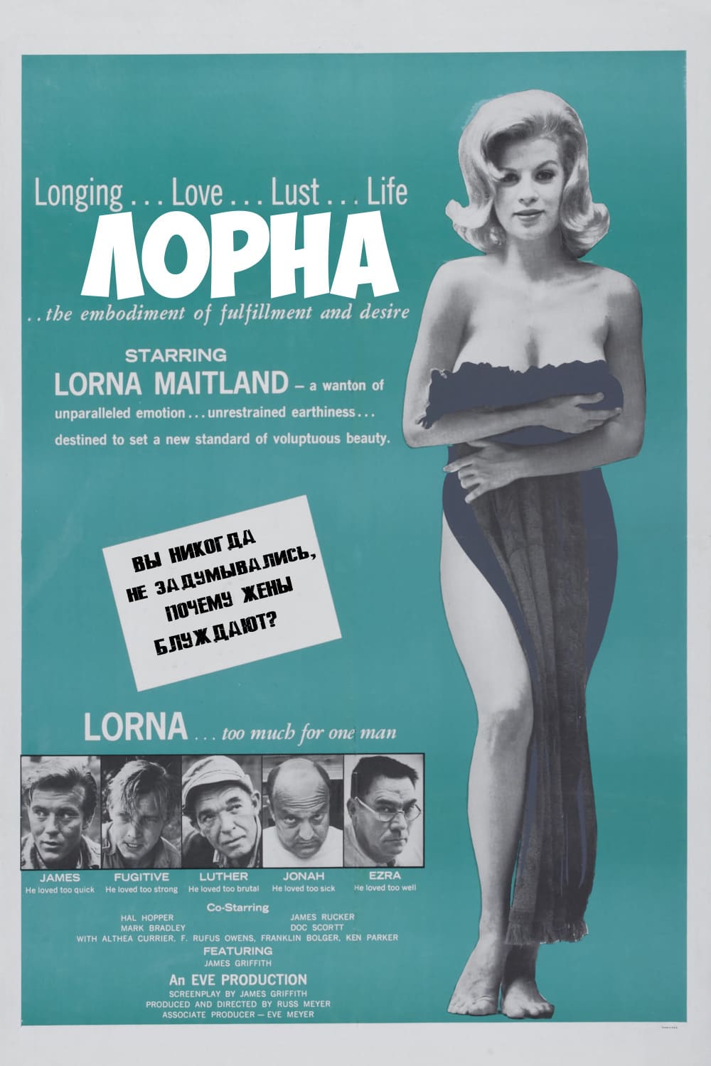Lorna is a 1964 independent film starring Lorna Maitland, produced and directed by Russ Meyer . It was written in four days by James Griffith, who played the preacher in the film . Lorna marks the end of Meyer's "nudies" and his first foray into serious film making . It was his first film in the sexploitation style with a dramatic storyline .