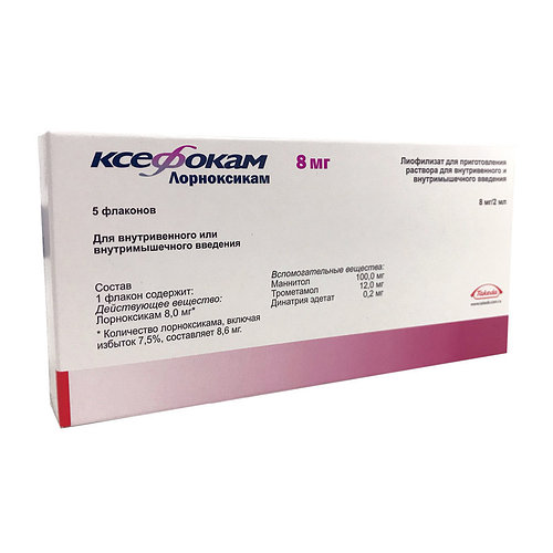 Форма выпуска, упаковка и состав препарата Лорноксикам . Лиофилизат для приготовления раствора для в/в и в/м введения в виде плотной массы желтого цвета . 1 фл . лорноксикам . 8 мг . Вспомогательные вещества: маннитол (маннит) - 100 мг, трометамол - 12 мг, динатрия эдетат - 0 .2 мг . . .