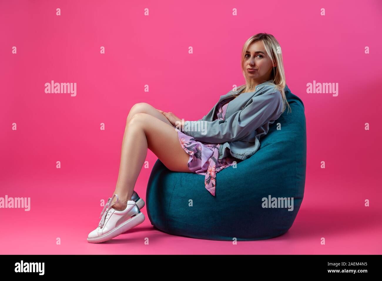 Blonde Modelle Lexi Lowe mit langen Beinen