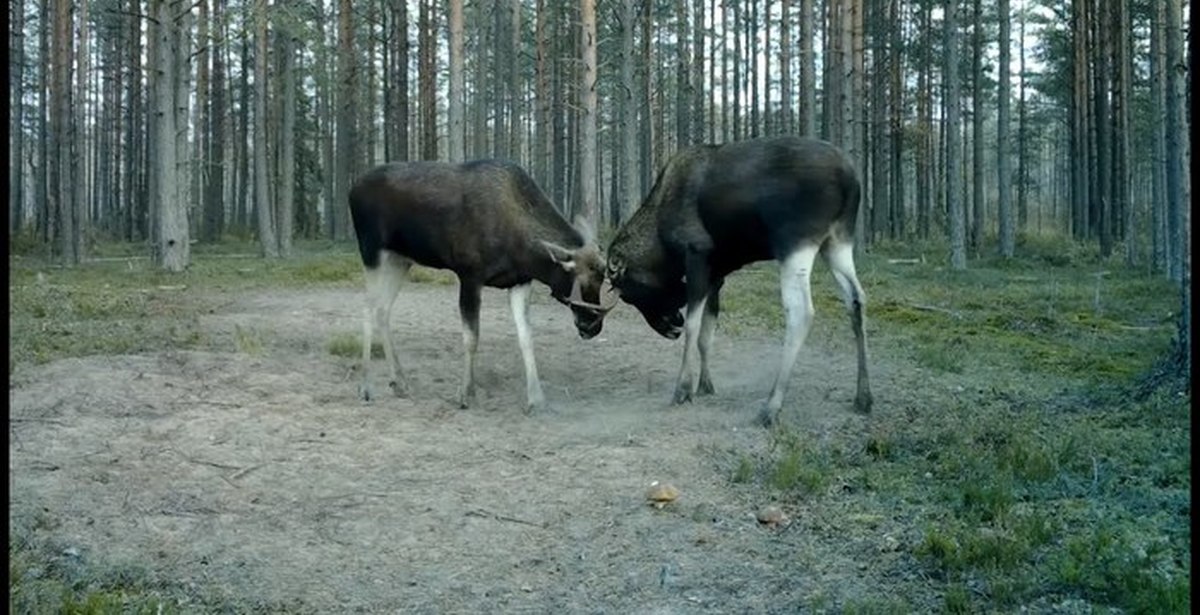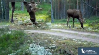 Лось ест грибы