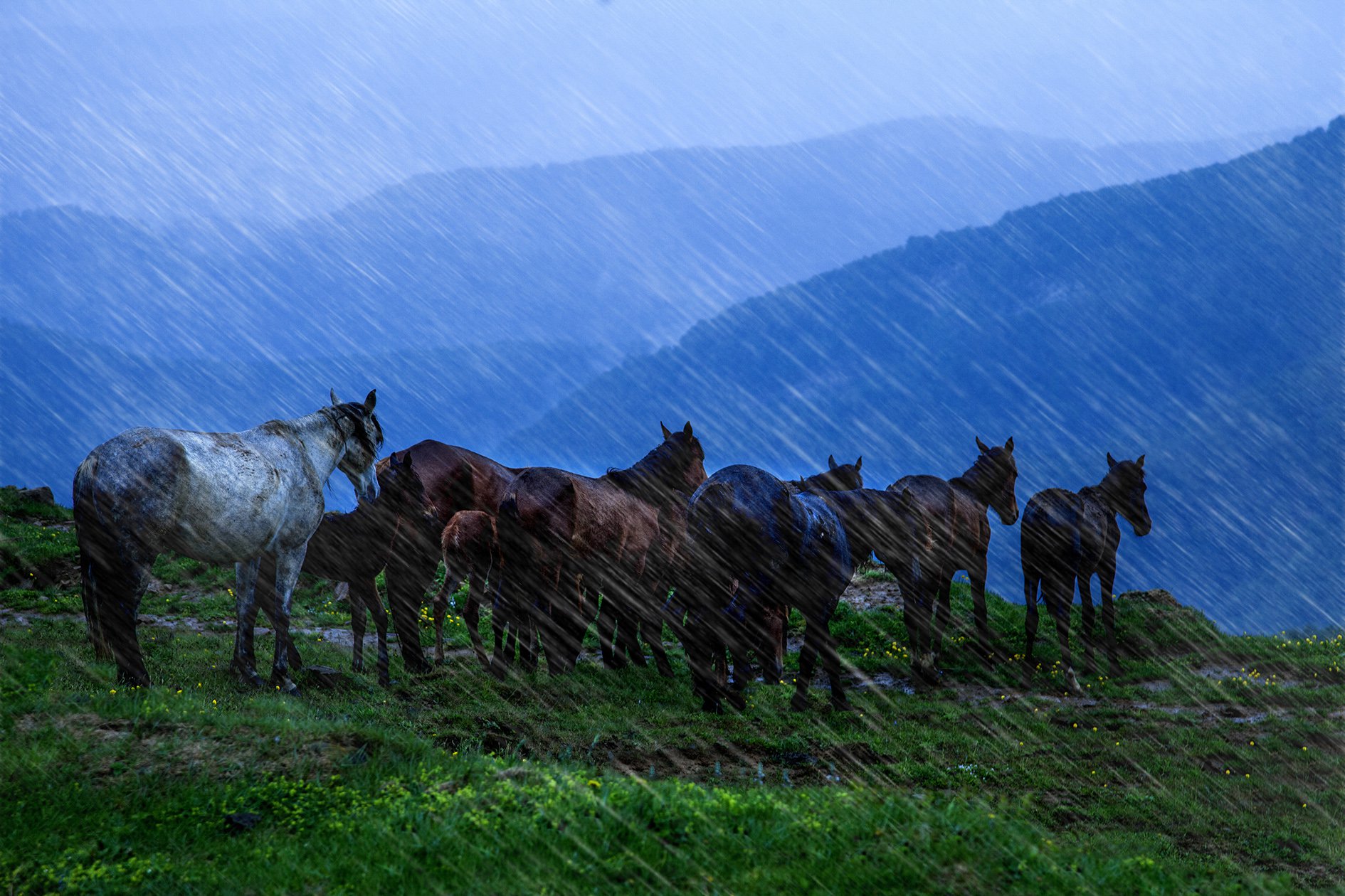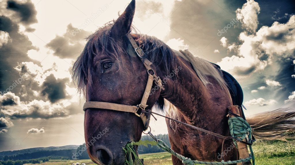Лошадь Под Дождем Фото