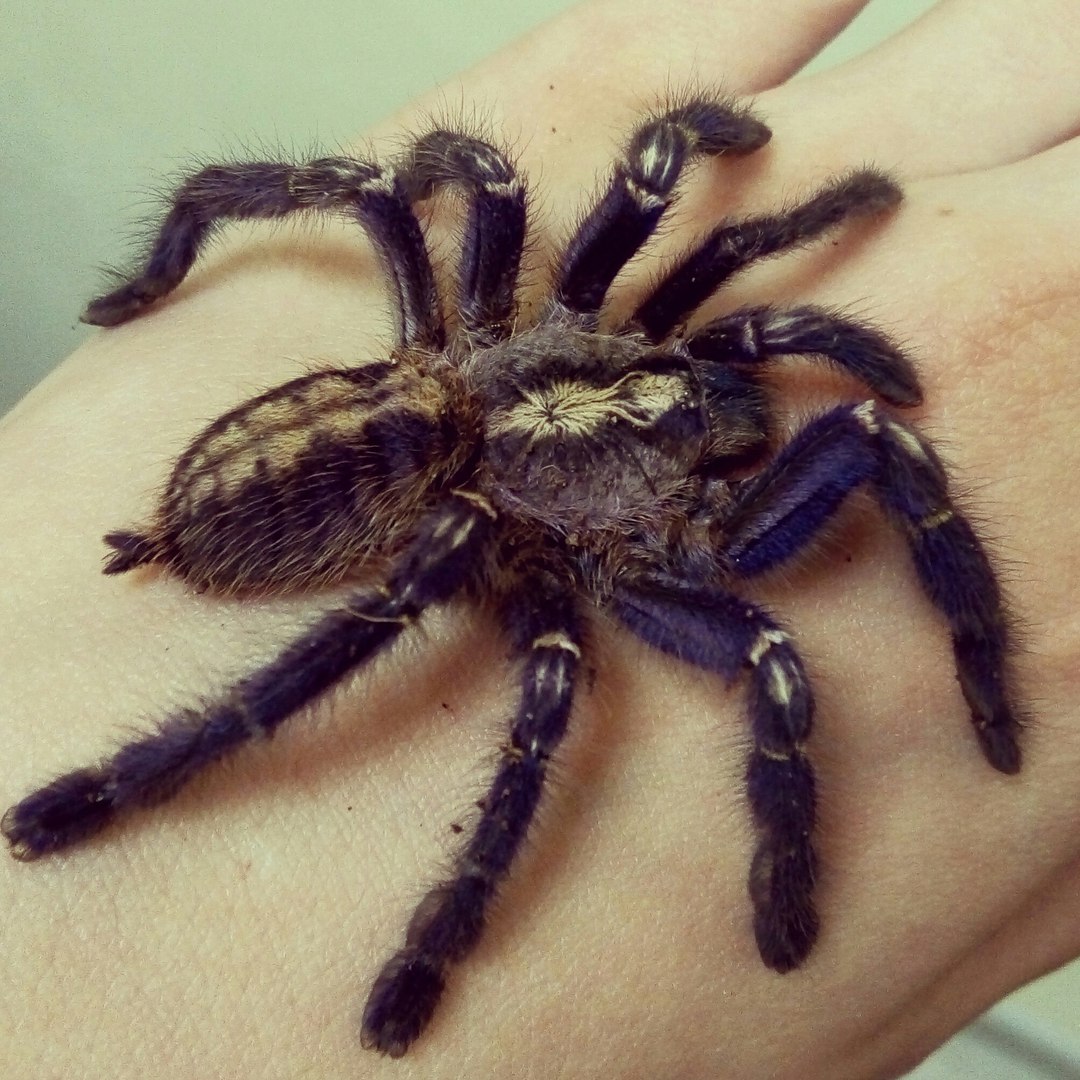 Еще известен как "лошадиный паук" из-за размеров . Данный паук входит в пятерку самых крупных . Размах лап достигает 25 см . На фото моя парихибана .