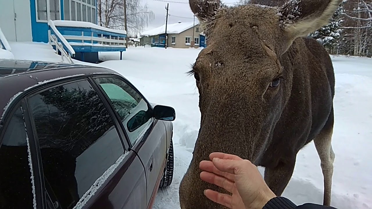 Лоси нападают на машины