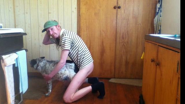 Mentally retarded man fucks his female dog