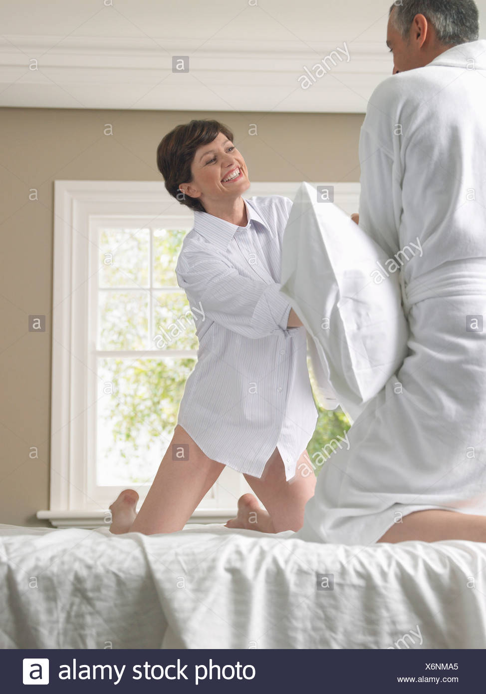 Esegui il download di questa immagine stock: Concetto pigiama party . Amiche di suor lotta di cuscini sul letto, di mattina sole risplende nella finestra . - T50YX9 dalla libreria Alamy di milioni di fotografie, illustrazioni e vettoriali stock ad alta risoluzione .