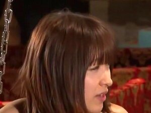Sexy brunette with long hair rides a stiff cock