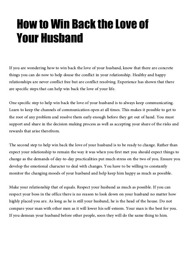 A husband who still loves his wife may also display signs of affection, give you the time of day, and make plans with you for the short- and long-term; he wants to know how your day went and what . . .