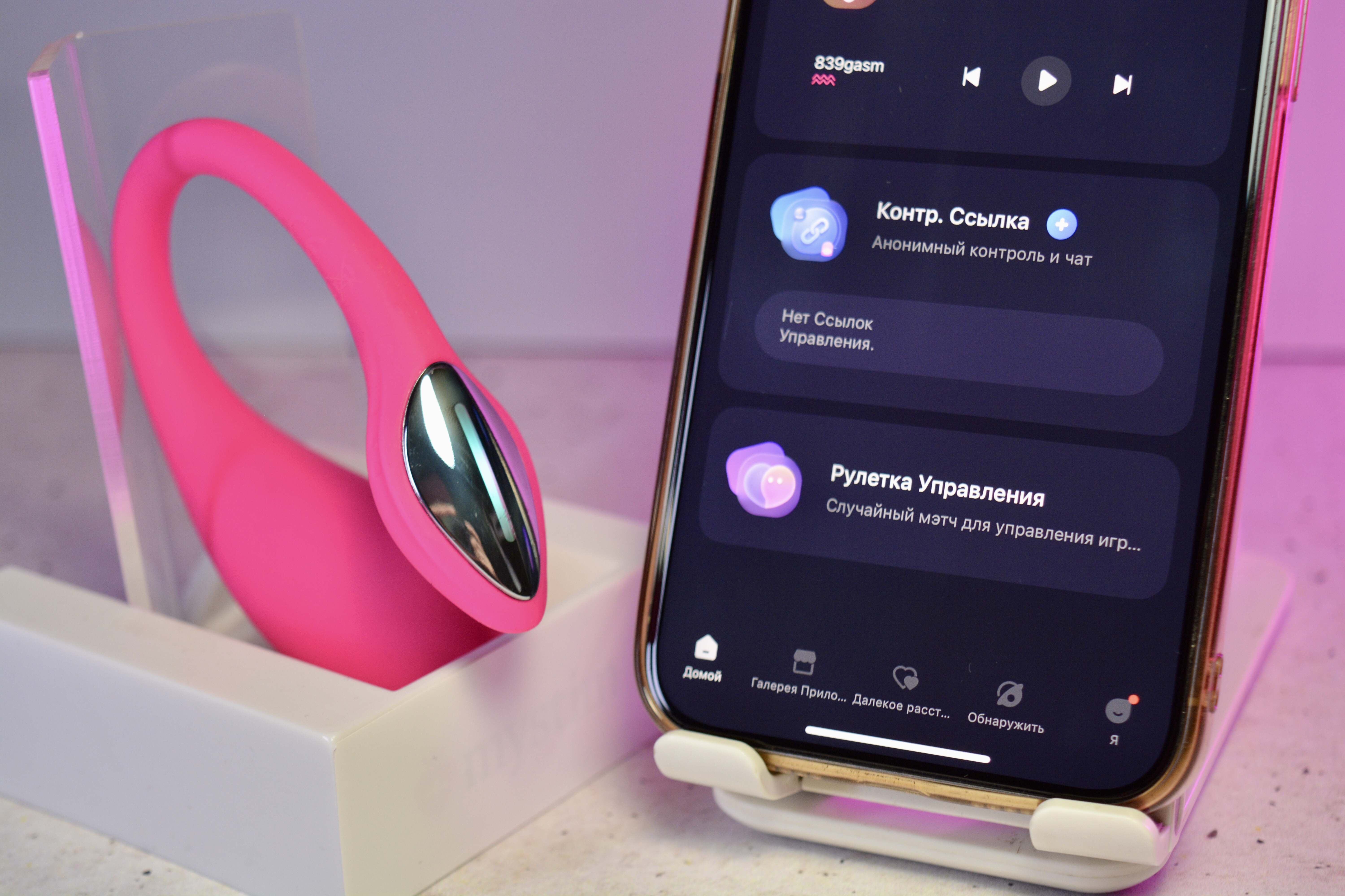Еще одним замечательным анонимным пространством внутри приложения становится «Link Hub» или как его перевели на русский «Оргиейс». Вот там я залипла надолго. В чем фишка? В том, что там можно создать ссылку, что-то типа собственной комнаты. Вы сами решаете на одного человека она рассчитана или на группу людей. Передаете ли вы управление над собой или задаете разные слова для разного уровня вибрации, при упоминании которых в чате игрушки будут вибрировать у всех участников комнаты. Но можно и просмотреть комнаты других пользователей, которые разместили их. Жалко только, что пока ты ищешь подходящую комнату, там есть значки игрушек, которые подключены у пользователя, а потом будут видны только названия. Нужно знать, как какой девайс называется, чтобы понимать, что именно ты используешь.