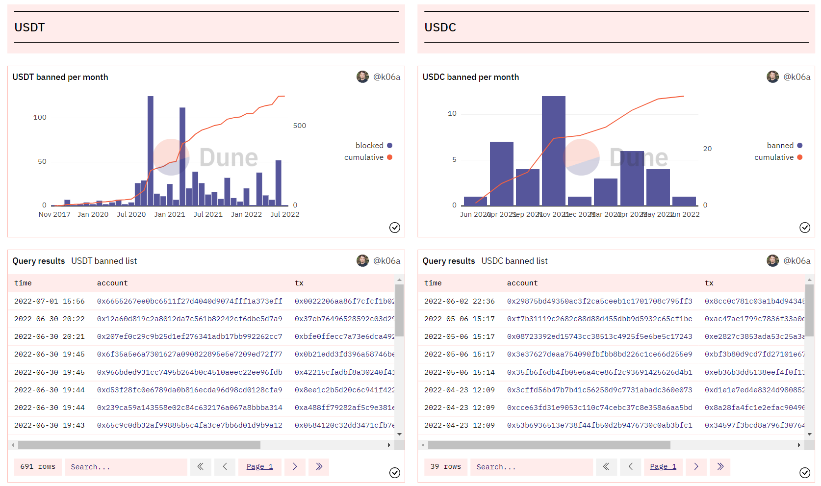 Все мы знаем о том что $USDC, $USDT и другие централизованные стейблы обладают возможностью заблокировать на адресе свои токены. Вот Антон даже сделал табличку с адресами