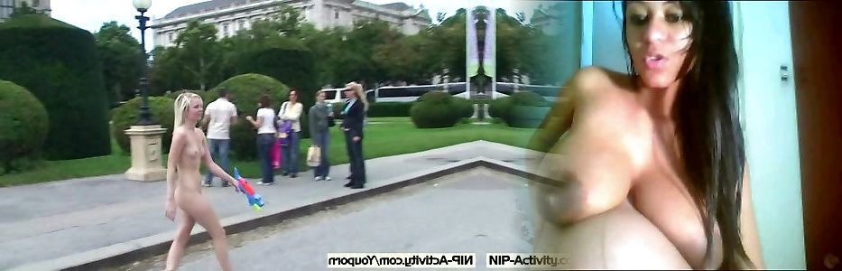 Brune à gros seins en action dans les rues