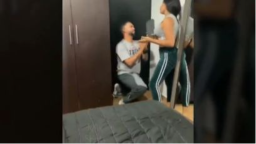 Brunette chick gets hammered by her boyfriend