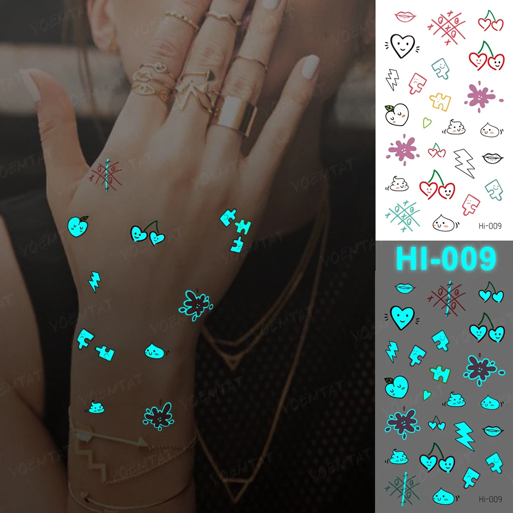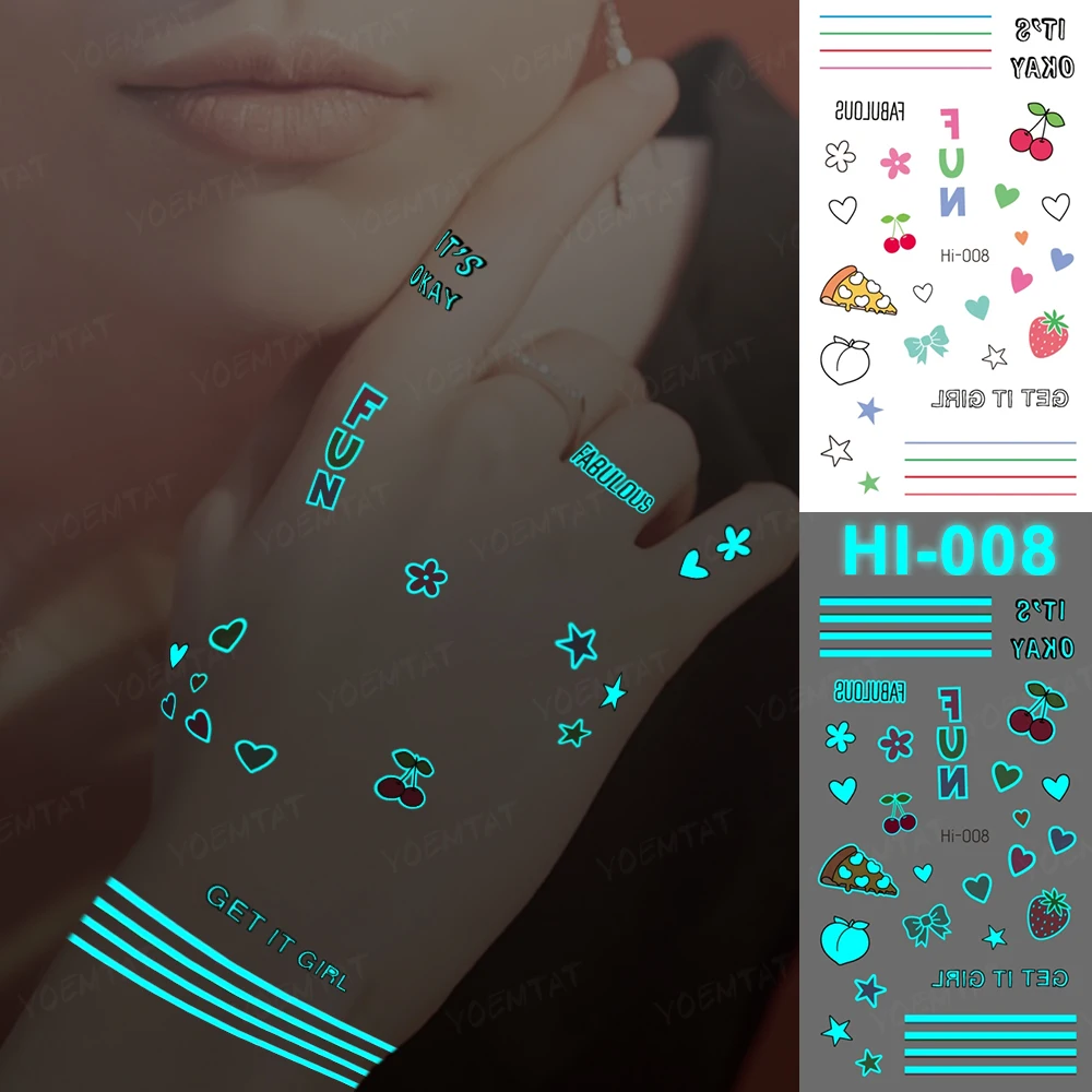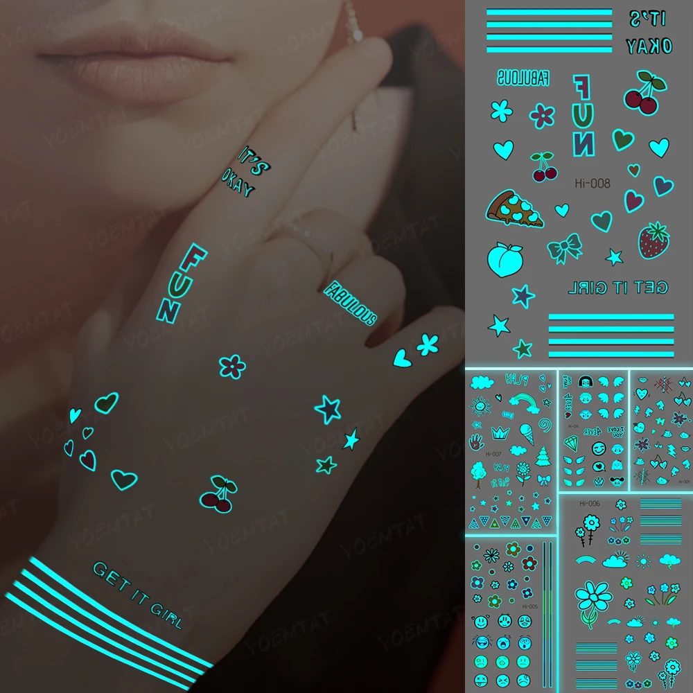 "Luminous Tattoo Cute Small Pattern Finger Face Party Transfer Tattoos Flower English Letter Text Line Waterproof Temporary Tatto" * Buy Now Just For 1$