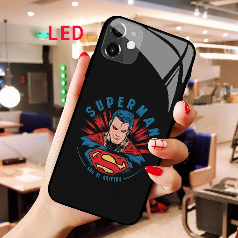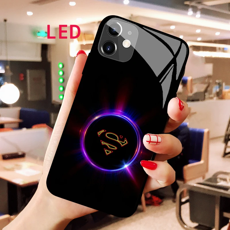 SwxqyYoITHere you can buy Luminous Tempered Glass phone case For Apple iphone 12 11 Pro Max XS mini Superman All Inclusive Popular LED Backlight New cover with free delivery to your post office.