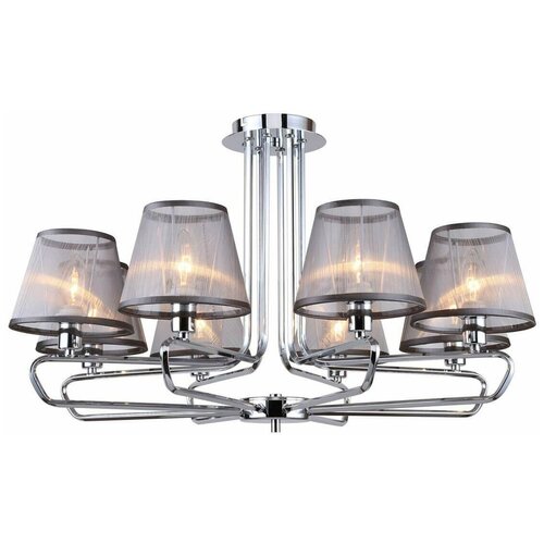 Lustre de plafond Cache 2343-8P de la marque allemande F-Promo. Cette lampe de la série Cache FP présente un design unique qui peut devenir un accent clé dans la conception d'un appartement. Hauteur : 44 cm ; Largeur - 74 cm La marque F-Promo a équipé ce modèle de lampes avec un culot E14 et une puissance maximale de 40 Watts. En connectant la lampe, vous bénéficierez d'un éclairage optimal dans l'appartement. La couleur des luminaires du lustre de plafond Cache 2343-8P est chromée.Le magnifique lustre modèle 2343-8P du fabricant allemand F-Promo appartient à la collection Cache et est parfait pour un salon conçu dans un style néoclassique et est destiné à être installé au plafond. La base est en métal de couleur chrome et équipée d'abat-jour en organza transparent de forme conique dirigé vers le haut. Le lustre comporte 8 lampe(s) à incandescence d'une puissance de 40 W avec une douille E14. Surface d'éclairage de travail 17,8 m2. Le degré de protection du lustre est réalisé grâce à la technologie IP20.