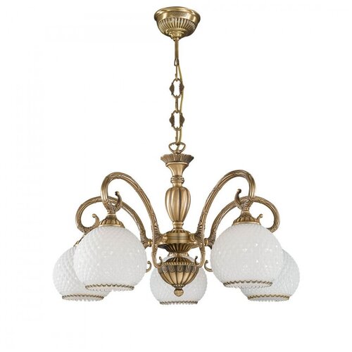 Le modèle populaire L.8400/5 du fabricant italien Reccagni Angelo est réalisé dans un style classique de la collection 8400 et s'adaptera parfaitement à l'intérieur. Le lustre suspendu 8400 L.8400/5 peut éclairer une pièce de 15 m² de manière efficace et uniforme. Le modèle L.8400/5 avec 5 lampes et douille E27 peut être utilisé pour les plafonds tendus. La lampe est faite de matériaux de haute qualité. Achetez des lampes dans la boutique en ligne SvetBoutique !Produit original certifié avec une garantie du fabricant. Attention aux contrefaçons !Ce modèle unique de la société italienne Reccagni Angelo appartient à la collection Rosa 8400 et est parfait pour une installation au plafond d'une chambre décorée dans un style classique. Le lustre suspension Reccagni Angelo aux abat-jour ronds illuminera une pièce de 16,7 mètres carrés. m. Le fabricant Reccagni Angelo recommande d'utiliser des lampes à incandescence avec un culot E27 et une puissance de 60 W pour l'appareil. L'appareil est fabriqué à partir de matériaux : verre et métal et peut être utilisé pour un plafond tendu. La couleur principale du produit est le blanc et le bronze.