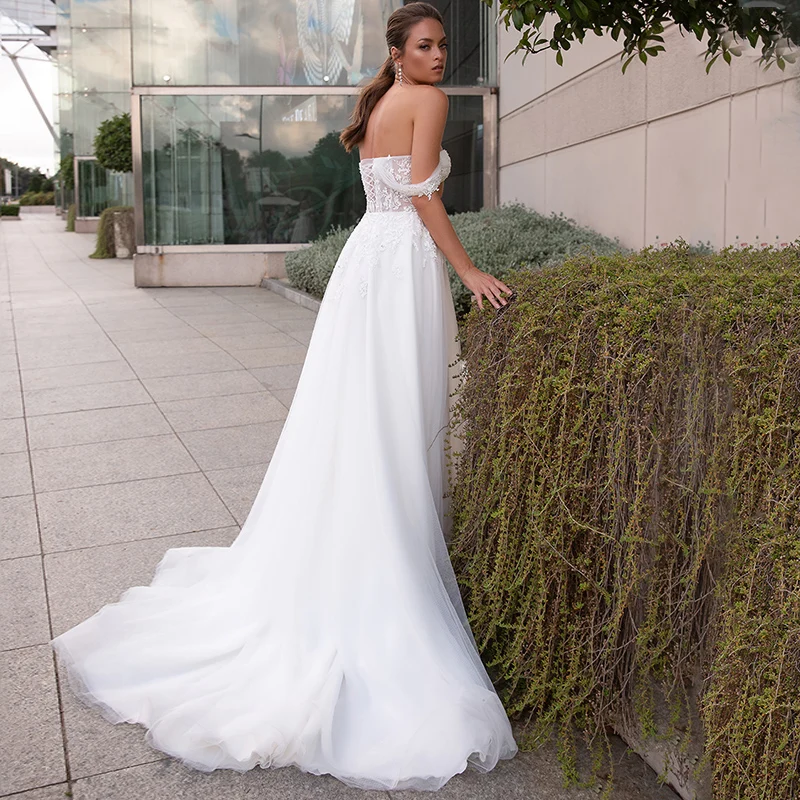 «Luxury A-Line Wedding Sleeveless 3D Three-dimensional Applique Charming Gowns Tube Top Backless Sexy High Split Robe de mariée» по лучшей цене на рынке! Всего за 144$ (13680рублей)