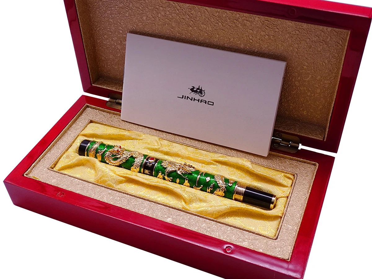 "Luxury Handmade Jinhao Roller Ball Pen, Green Cloisonne Double Dragon Pen Advanced Craft Writing Gift Pen for Business Graduate" * Buy Now Just For 47$