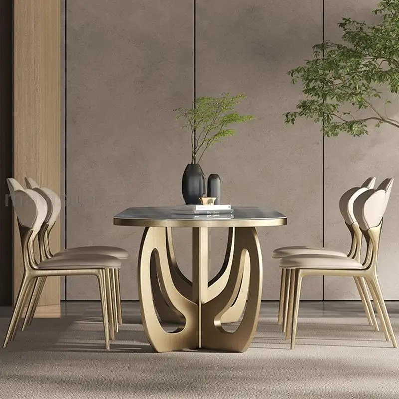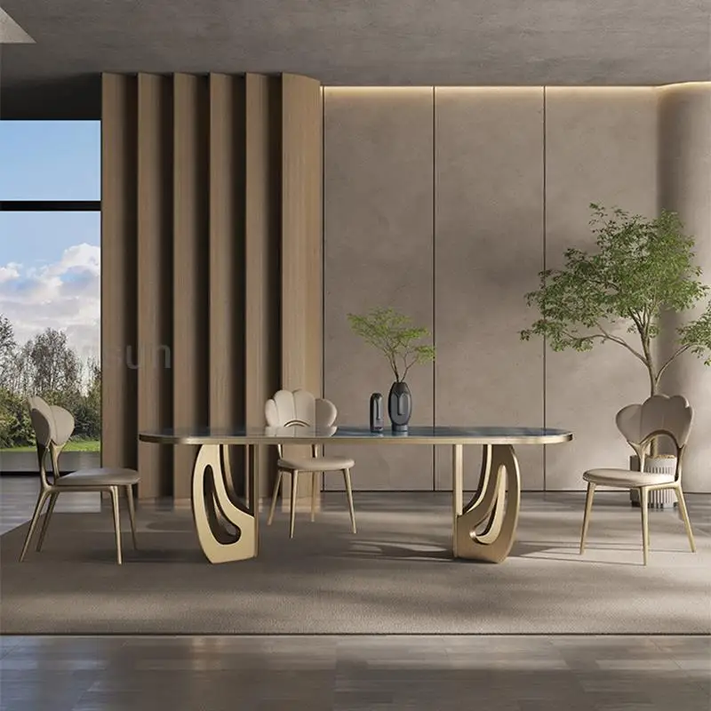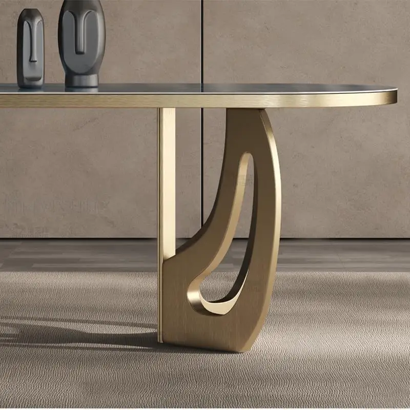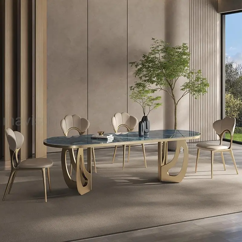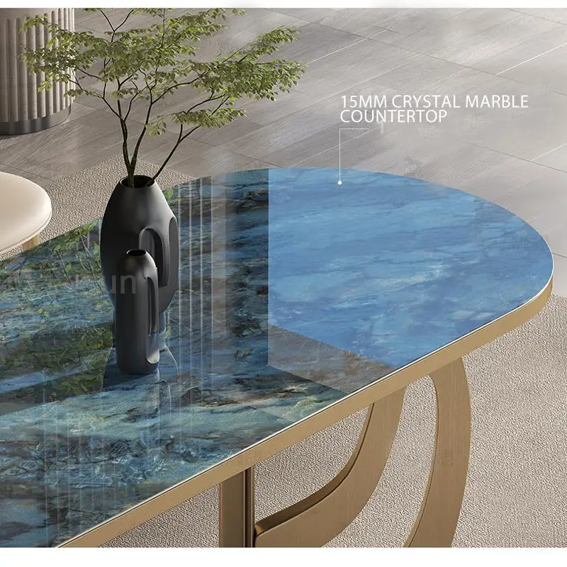 Luxury Kitchen Tables Blue Beautiful Texture Marble Panel Golden Stainless Steel Rectangular Dining Table With Rounded Corners - Купить с бесплатной доставкой