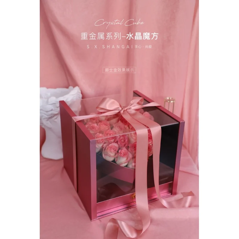 Luxury Square Acrylic Full Window Flower Box Inside Heart Shaped Rose Box Valentine's Day Gift Box With Drawer And Ribbon - Купить с бесплатной доставкой