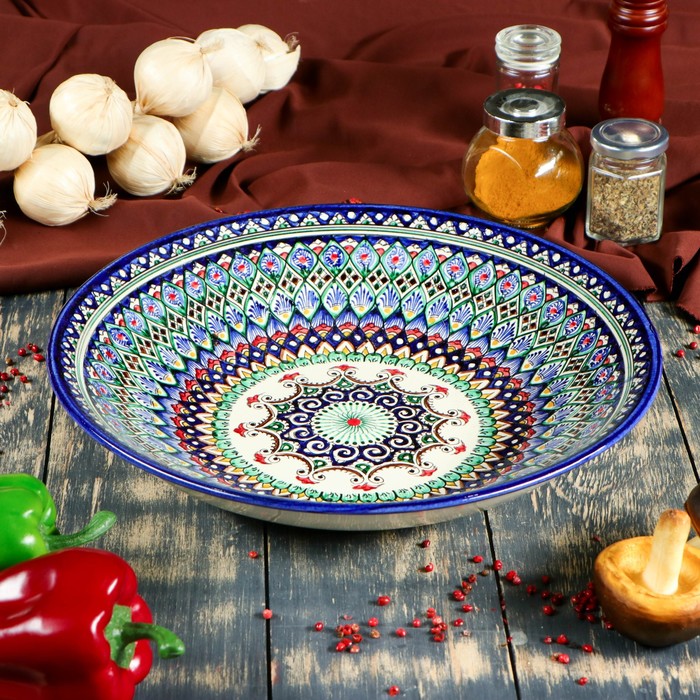 Lyagan Rishtan Ceramics "Motifs", 33 cm, profond, bleu