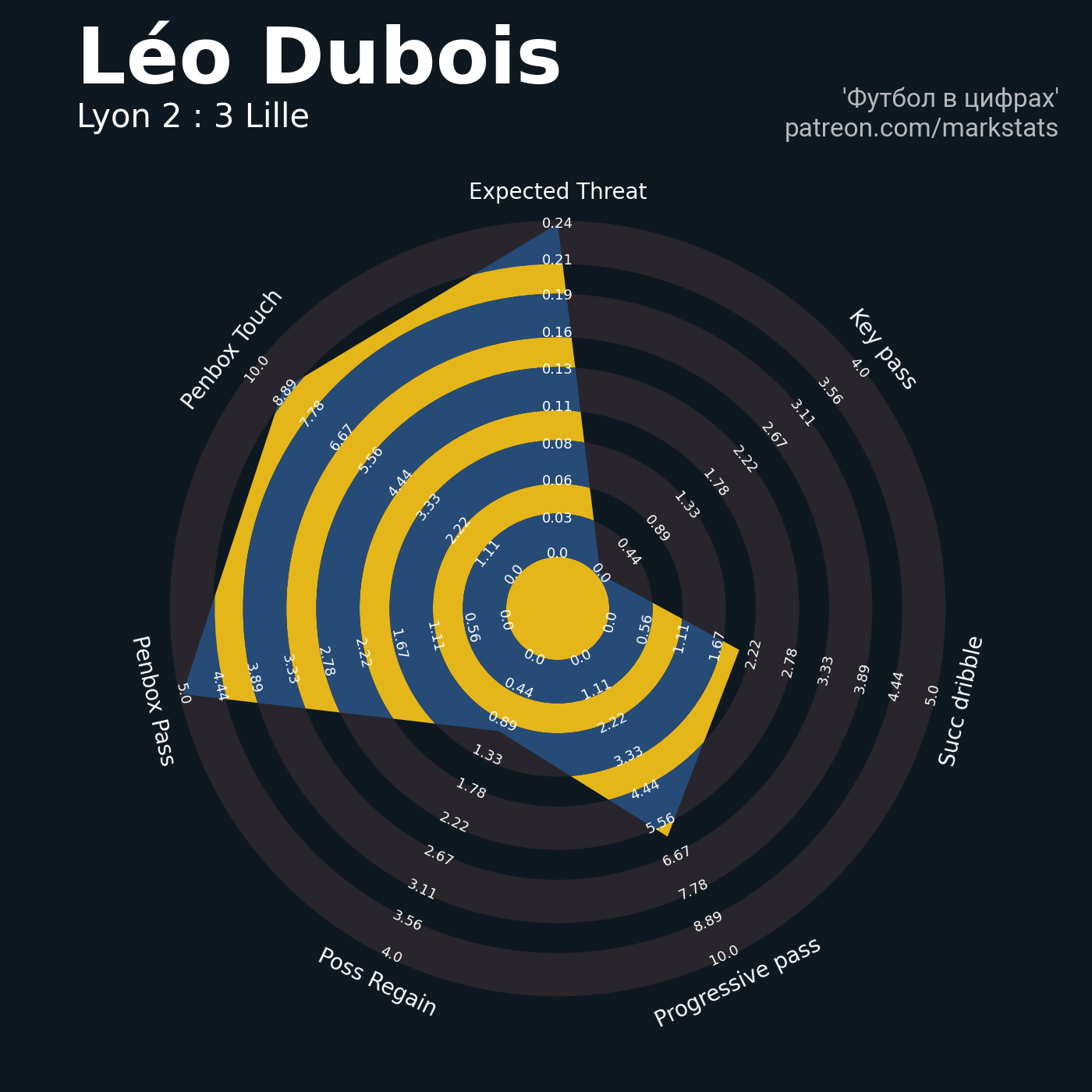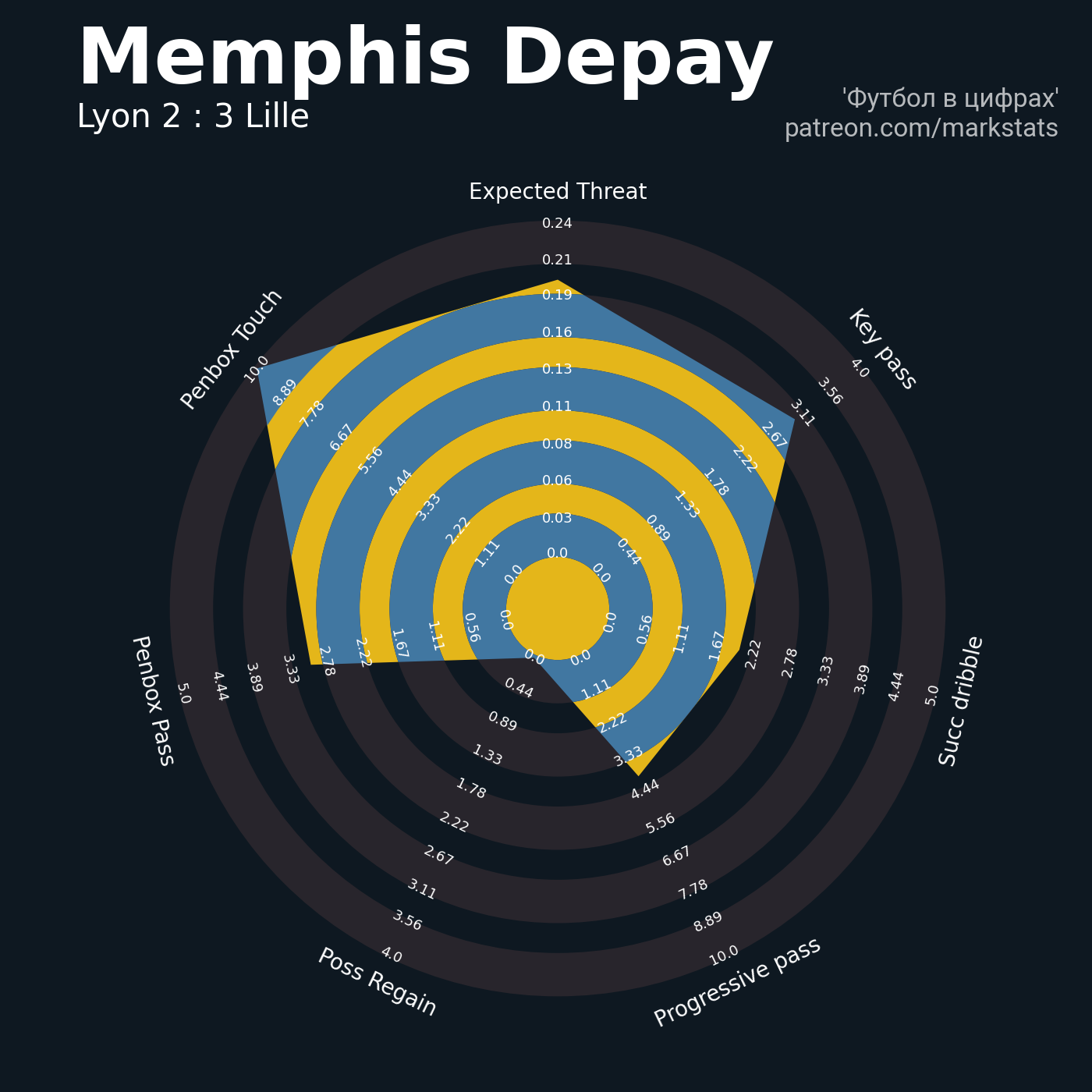 ▪ 0.24 очка xT (+0.04 со стандартов)