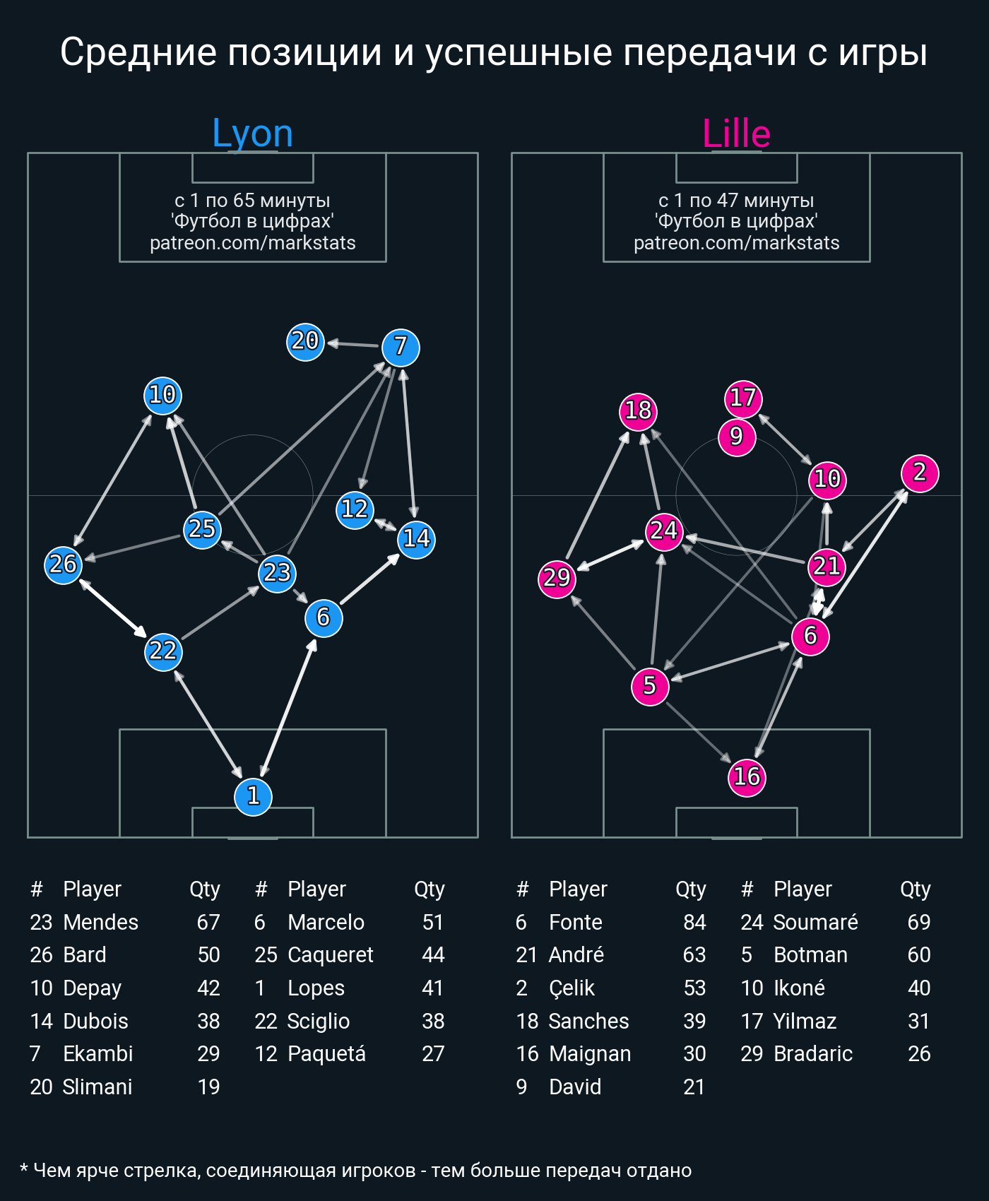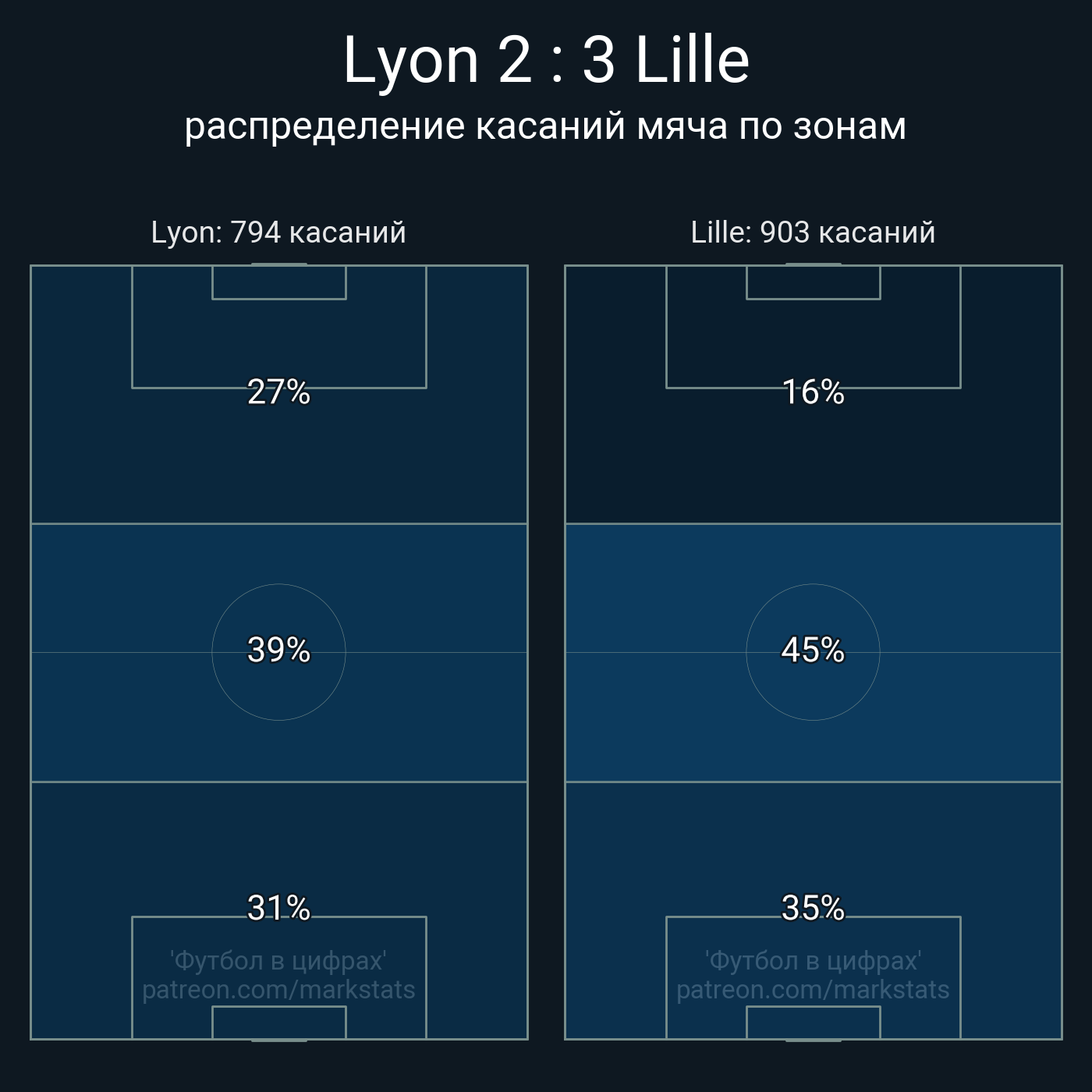 Футбол в цифрахСтатистика матча Lyon - Lille