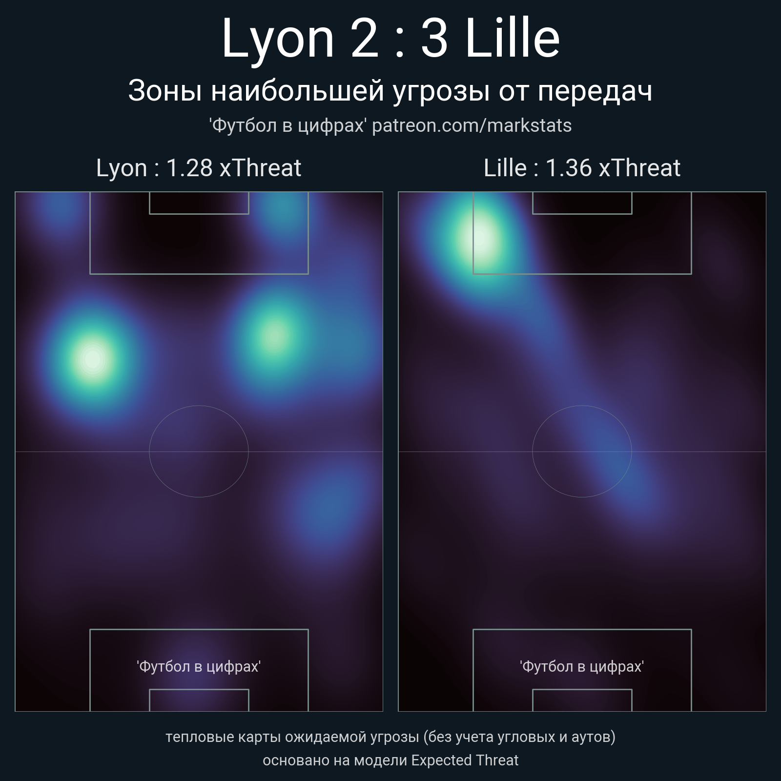 ▪ xThreat без учета угловых: 1.28 - 1.36