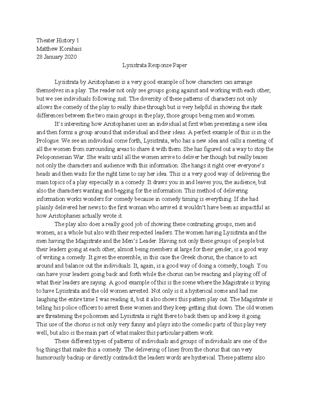 Example research essay topic lysistrata