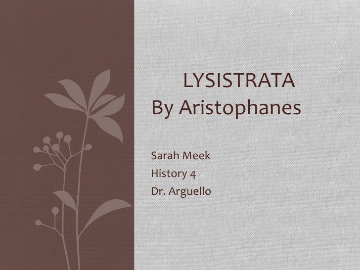 Lysistrata Essay . Topics : Woman, Gender, Marriage Pages: 3 (563 words) Published: September 12, 2017 . In Aristophanes' " Lysistrata ," the protagonist is an Athenian woman, who believes her purpose is to end the Peloponnesian War between Athens and Sparta . She calls the women of the two city-states together in a secret meeting to propose . . .