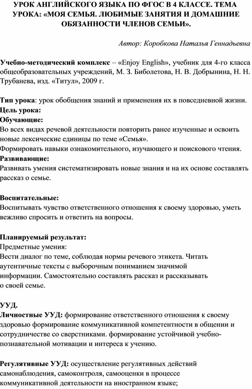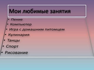 Урок по английскому языку Твои любимые занятия .
