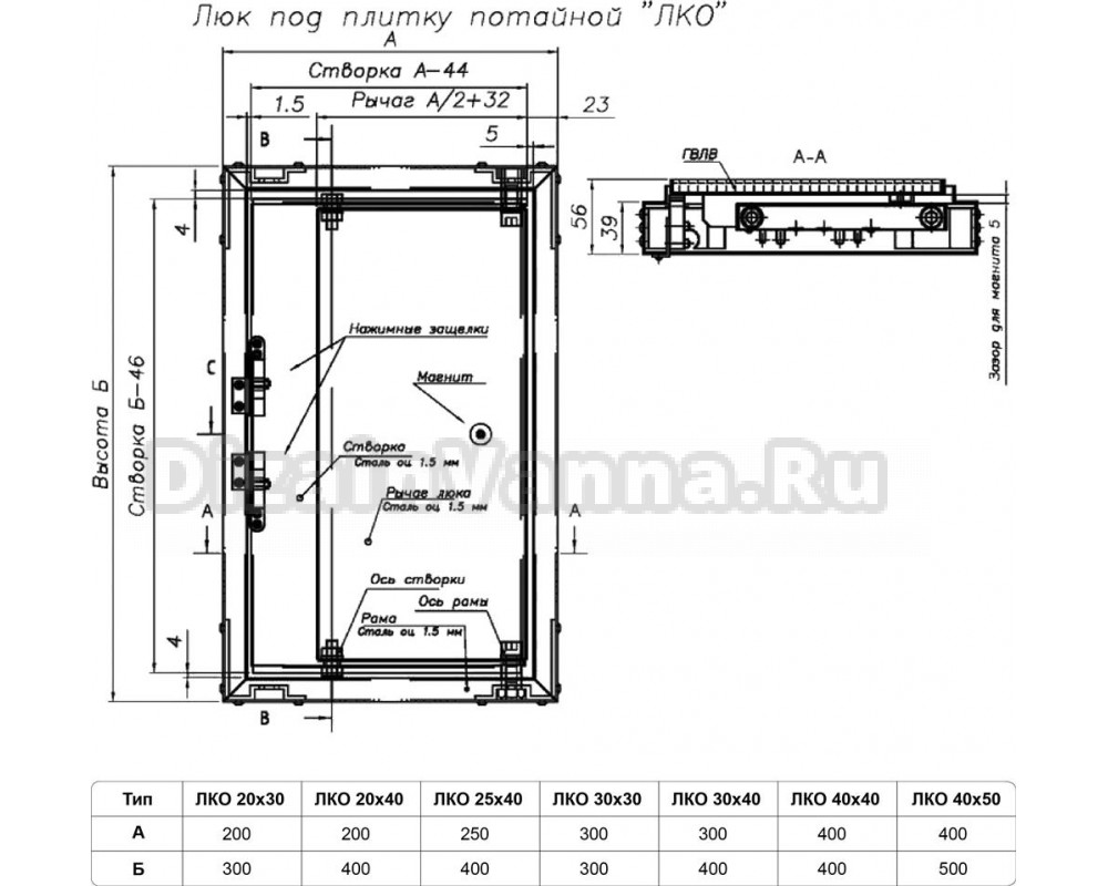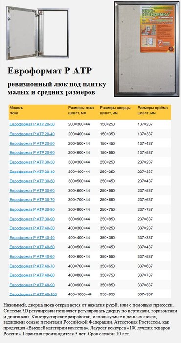 Люки невидимки размеры