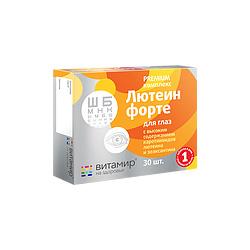 «Лютеин форте витамины для глаз ВИТАМИР®» — это БАД к пище, рекомендуемая в качестве дополнительного источника лютеина и зеаксантина, витаминов А, С, Е, рутина, цинка и селена, способствующих поддержанию нормального функционирования органов зрения . Рекомендации по применению: взрослым по 1 таблетке в день во время еды .